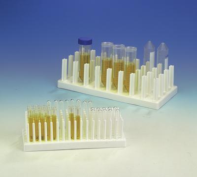 SUPPORT, PP, FULL-VIEW, TEST TUBE, 10-13MM, 80PLACES^ A versatile rack with pins for support or draining. Tubes can be stored upright, full or empty, or inverted over pins for draining. Steam autoclavable at 121[degree] C (250[degree]F).