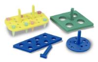 These high-density polyethylene foam racks are ideal for floating tubes in water baths, tubs, or beakers. Closed-cell foam is resistant to water absorption, so the racks can be washed and reused. Foam handles make it easy to lift samples out of baths. Racks come in different colors and shapes for easy identification. The round rack (Cat. No. 82017-634) is sized to fit a beaker and features unique x-shaped slits that accommodate a variety of tube sizes. Features: * Resistant to water absorption * Color-coded for easy identification * Different shapes available Available options: * Blue, parallelogram shape, 8 holes (Cat. No. 82017-630) for 15 ml tubes * Yellow, rectangle shape, 24 holes (Cat. No. 82017-632) for 1.5 - 2.0 ml tubes * Blue, round shape, 18 holes (Cat. No. 82017-634) for 0.2/0.5/1.5 - 2.0 ml tubes * Green, diamond shape, 4 holes (Cat. No. 82017-628) for 50 ml tubes