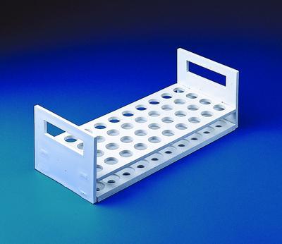 Polypropylene Rack^ Used in elevated-temperature incubation water baths. For serum, RIA and reaction vials. Corrosion, rust and shatter proof. Durable and lightweight. Chemically resistant and autoclavable to 121[degree]C. 2-tier design. For tube OD 10-13mm. 72 places. 23.8Lx11Dx9Hcm.