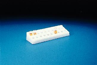 Spectro Cell Rack^ Polypropylene rack holds twenty 10mm lightpath spectrophotometer cells in two tiers with numbered wells.