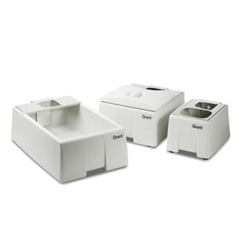 Accessories for use with Grant Immersion Circulators (T100, TC120, TX150, TXF200). Accessories include; plastic tanks, stainless steel tanks, lids, shelves and rack