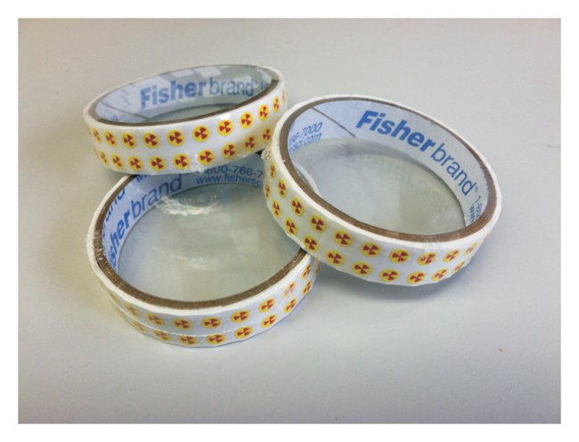 Radioactive Indicator Dots, Radiation Indicator dots adhere to laboratory glassware and equipment to identify caution, Each
