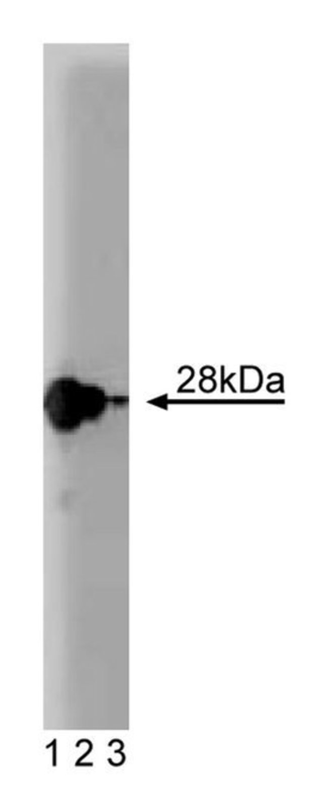 Ral is a low molecular weight GTP-binding protein belonging to the Ras superfamily of GTP-binding proteins and shows 50% amino acid identity to Ras. Ral cDNA clones have been isolated from human placenta, human pheochromocytoma, simian β-lymphocyte, and marine ray electric lobe cDNA libraries. In humans, cDNA sequences for Ral A and RalB have been determined. The predicted amino acid sequences show 85% identity. Both proteins consist of 206 amino acids with a predicted molecular weight of 24kDa. However, Ral A isolated from human platelets shows an apparent molecular weight of 26-28kDa. Ral A mRNA levels in adult mouse tissues appear to be highest in testes, ovary, and brain, with lower levels found in the liver, spleen, kidney, thymus, heart, and salivary glands. Similar results have been observed in rat tissues.Immunofluorescence, Immunohistochemistry, Immunoprecipitation, Western Blotting