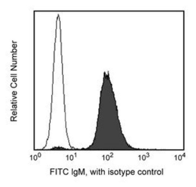 The II/41 clone has been reported to react specifically with mouse IgM of Igh-C[a] and Igh-C[b] haplotypes. It has been reported not to react with other Ig isotypes. In addition, the II/41 clone has been reported not to stimulate B-cell proliferation. ThiHost Species: RatClone: II/41Isotype: IgG2a, κSpecies Reactivity: MouseELISA, Flow Cytometry