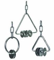 Stainless Steel Rattle, 3in, round^ Made of 1/4 inch welded stainless steel round rod. Four 1.5 inch stainless steel washers slide freely. Includes a permanently attached adjustable stainless welded link chain (5in) with a stainless quick link for cage attachment. Autoclavable and cage-washer safe.