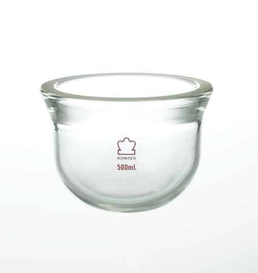 Flask with a flat ground flange and a 3/16” wall construction, 4-inch flasks accept PTFE blade 789030-0022 and clamp 613750-0000, Manufactured from 33 expansion, low extractable borosilicate glass conforming to USP Type I and ASTM E438, Type I, Class A requirements
