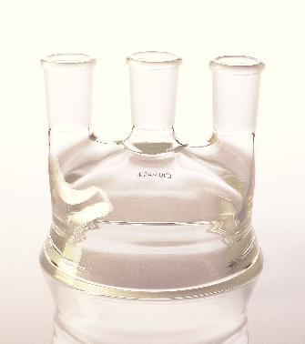 Flasks Reaction Flask Top Three Neck Reaction^ Flange I.D. (Inches); 4. Center [standard taper] Joint; 29/42. Side [standard taper] Joints; 24/40. Use Clamp; 613750-0000 Three neck flask top with a flat ground flange for use with cylindrical and spherical flasks having the same I.D.