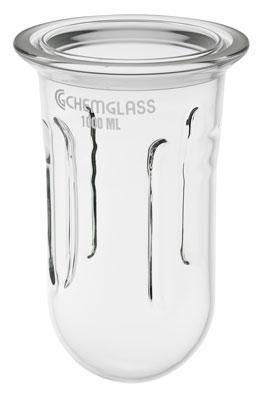 REACTION VESSEL, CYLINDRICAL, MORTON TYPE^ 1000ml. Flange I.D; 100mm; Body O.DxH: 105x210mm. Cylindrical reaction vessel constructed with a flange having a groove formed in the sealing surface of the flange. Indentations increase agitation of the contents of the vessel during stirring.