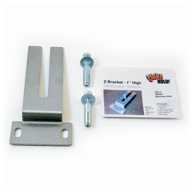 Floor-Mounting High Z-Bracket for Equipment with Adjustable Legs, Secures equipment with adjustable legs in the event of an earthquake, Each