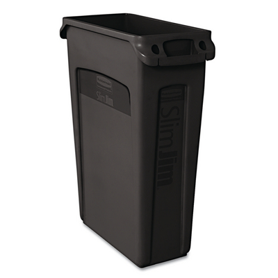 Rubbermaid* Commercial Slim Jim Receptacle, Venting Channel, Rectangular, Plastic, 23gal, Black^