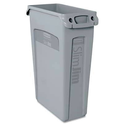 Rubbermaid* Commercial Slim Jim Receptacle, Venting Channel, Rectangular, Plastic, 23gal, Gray^