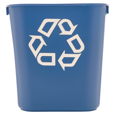 Rubbermaid* Commercial Small Deskside Recycling Container, Rectangular, Plastic, 13 5/8 qt, Blue^