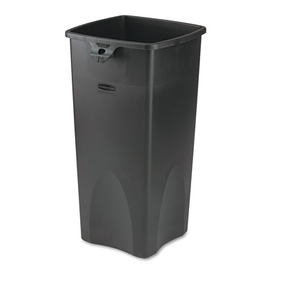 Rubbermaid* Commercial Untouchable Waste Container, Square, Plastic, 23gal, Black^
