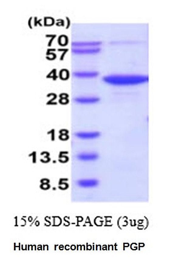 PGP Human recombinant 50 ug^ PGP, Human recombinant, Source: E.coli, Purity: > 95% by SDS-PAGE, Molecular Weight: 36.5 kDa, synonyms: Phosphoglycolate phosphatase, Glycerol-3-phosphate phosphatase, G3PP, Aspartate-based ubiquitous Mg(2 )-dependent phosphatase, AUM, size: 50 ug