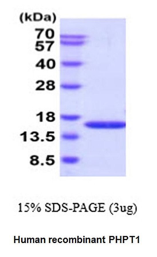 PHPT1 human recombinant 50 ug^ PHPT1, human recombinant, Source: E.coli, Purity: >/=95%, Molecular Weight: 15.9 kDa, synonyms: bA216L13.10, CGI-202, DKFZp564M173, HSPC141, PHP14, RP11-216L13.10, 14 kDa phosphohistidine, Biological Activity: Specific activity is >120 units/mg, size: 50 ug