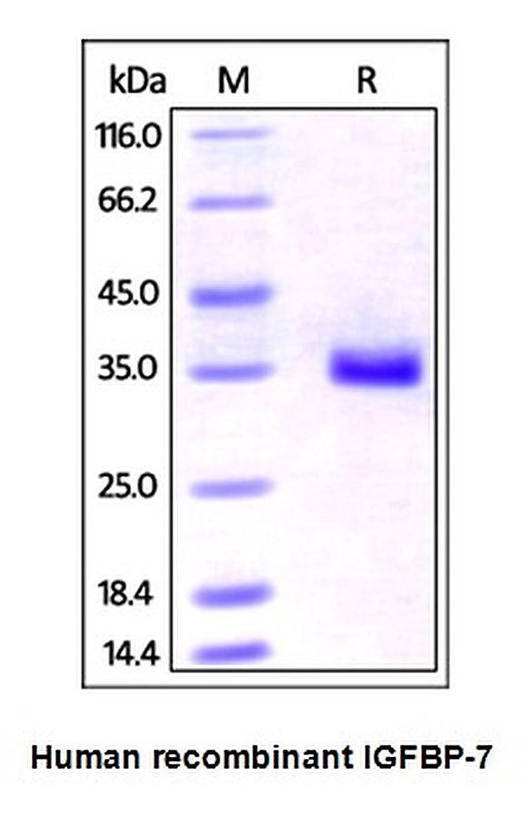 CellExp* GFBP-7 Human Recombinant 50 ug^ CellExp* GFBP-7, Human Recombinant, Source: HEK293 cells, Purity: > 95%, synonyms: insulin-like growth factor-binding protein 7, IGFBP7, IGF-binding protein 7, IGFBP-rP1, MAC25 protein, Tumor-derived adhesion factor, TAF, Appearance: Lyophilized, size: 50 ug