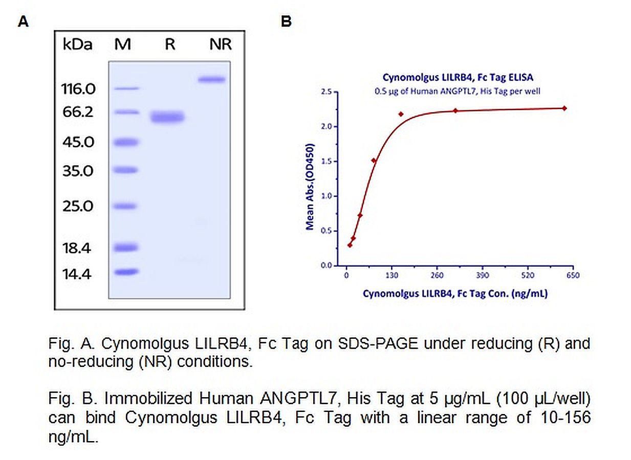 CellExp* LILRB4 / CD85k / ILT3 Cynomolgus recombinant 50 ug^ CellExp*LILRB4 / CD85k / ILT3, Cynomolgus recombinant, Source: HEK293 cells, Purity: > 85%, Molecular Weight: 52.7 kDa, synonyms:LILRB4, ILT3, LIR5, CD85K, HM18, Biological Activity: Fc Tag with a linear range of 10-156 ng/mL, size: 50 ug