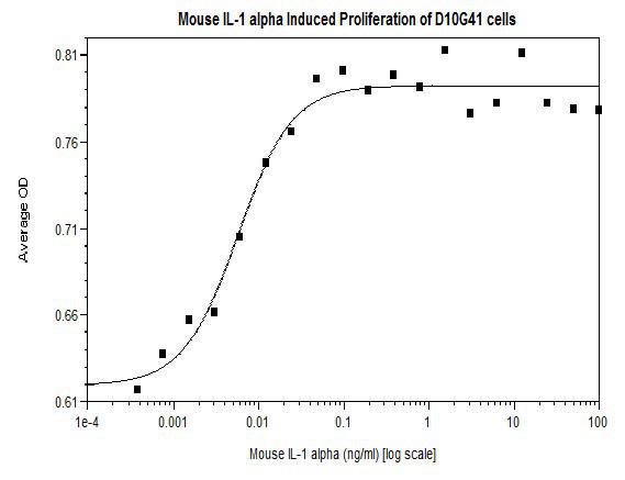 Recombinant Protein Mouse Il-1 Alpha 1Mg^ Recombinant Protein Mouse Il-1 Alpha, Source: Genetically Modified E.Coli, Purity: >/=95%, Predicted Mw: Monomer, 18.1 Kda (157 Aa), Formulation: Lyophilized From A Sterile (0.2 Micron) Filtered Aqueous Solution, Endotoxin: </=1 Eus/Ug, Size: 1Mg