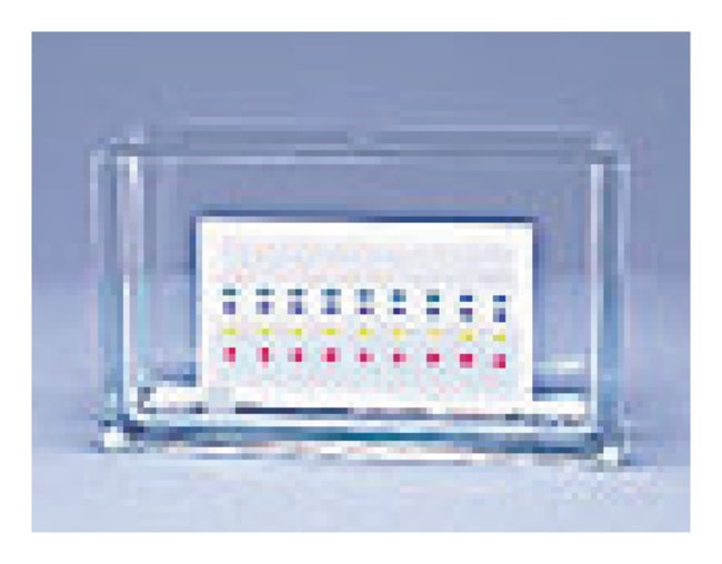 Can be used with 10 x 10cm, 5 x 10cm or 10 x 20cm platesCentering baffle to support plates during developmentSupplied with lidBeveled edges and tops and bottoms ground flat