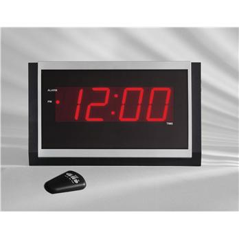 The 2 1/2 "H x 1-1/4 "W bright red LED digits are easily seen from across the room in darkness as well as in light. This wall clock has a selectable 12-hour or 24-hour display format and has PM and alarm indicators. Both the clock and alarm time can be set on the unit itself or by remote control. Works on AC120V. Comes with a 10' cord, a stand for bench top use, and a remote control with button cell battery. UL approved. Dim: 12 " x 6.5 " x 1-1/4 ". Weight: 24 oz. (696 g).