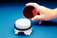 The replica-plating tool utilizes a locking ring that secures sterile velveteen squares onto a PVC cylinder for easy control of the plating device. To produce replicas, invert and lower the Petri dish carrying microbial colonies onto the cloth surface, then lift it. Next, lower a fresh sterile nutrient plate onto the velveteen surface and lift it, leaving a replica of the original colonies in the new dish. Features: • For use with 90 to 100 mm Petri dishes • May be disinfected between uses with a brief rinse in 70% ethanol or chlorine bleach • Aluminum ring is 10.2 cm (4") diameter; PVC cylinder is 6.9 cm (2 3/4") high • Not autoclavable Ordering Information: The tool comes with 12 sterile, white, 100% cotton, absorbent twill-backed velveteen squares; 15.2×15.2 cm (6×6"). Replacement velveteen squares are available, packed in a sealed bag with three inner locking bags each containing 12 squares, for a total of 36 pieces. Available products: • Replica-Plating Tool, Cat. No.: 25395-380 • Velveteen Squares, White, Cat. No.: 25395-382 • Velveteen Squares, Black, Cat. No.: 89033-116