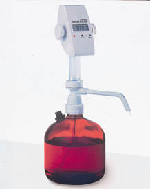Safety Funnel^ For Digitrate* Bottle-Top Burets. Funnel has an off-set stem for safer filling of reagent bottles.
