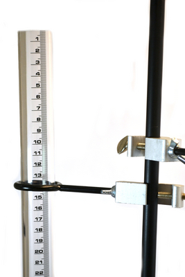 Resonance Apparatus^ Resonance Apparatus, Acrylic tube approx. 98 cm long and 2.5 cm diameter mounted on retort stand with clamp and boss, with metal vessel, connecting tubing and spring clip supported on iron ring. Dimensions: Weight (lb) 4.8x Length (in)39.0xWidth (in)3.9xHeight (in)3.1