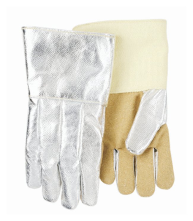 Gloves feature a 19 oz. aluminized back and a PBI™ palm to protect hands during high temperature applications.