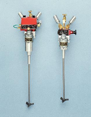 Reversible Air-Powered Stirrer, G-RV^ (G-RV) Rotates in direction and time cycle (0.2 to 30 seconds) you choose. Instant forward-and-reverse action. 1/2hp motor, 7 to 1 gear ratio. Stirs in batches up to 200L, to 1000rpm. Maximum torque: 3N-m.