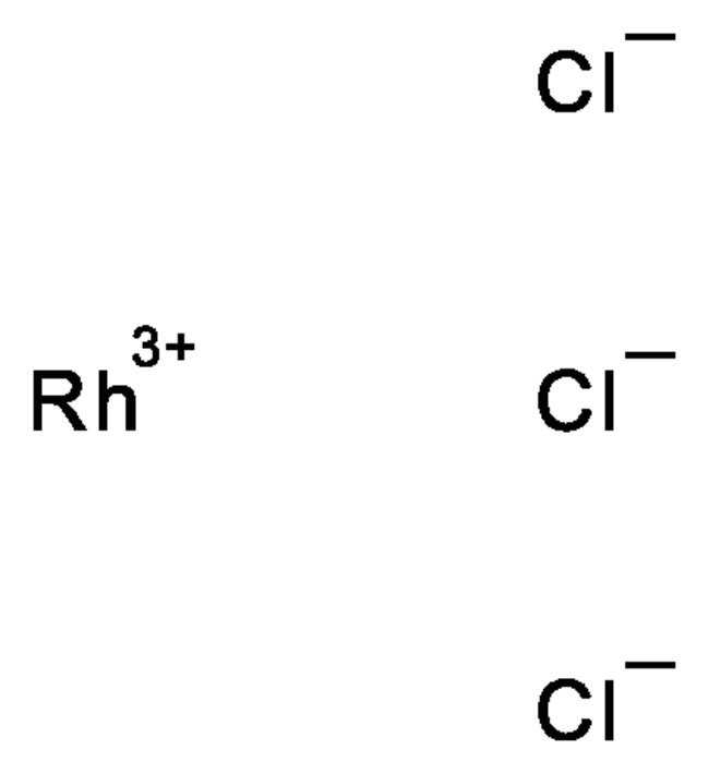 Rhodium(III) chloride hydrate is used as a catalyst to prepare acetic acid. It is also used as a catalyst for reduction, oxidation of alkenes, hydration of acetylene and isomerization of alkenes. It is involved in the hydrosilylation of alfa,beta-unsaturated esters to form dimethylketene trimethylsilyl acetals.