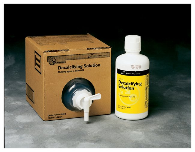 Offers rapid decalcification without destroying nuclear properties of the tissueThe EDTA and dilute hydrochloric acid in this solution require no heat, electricity, or other aids to decalcify bone tissueThis product(s) resides on a Fisher Scientific GSA or VA contract. If you are viewing this page as a nonregistered user, the price(s) displayed is List Price. To view your GSA or VA contract pricing, log in using your account number, or become a registered user by contacting one of our Customer Service teams. You can also view your contract price by searching for this item(s) on GSA Advantage. To place an order, contact Fisher Scientific Customer Service.