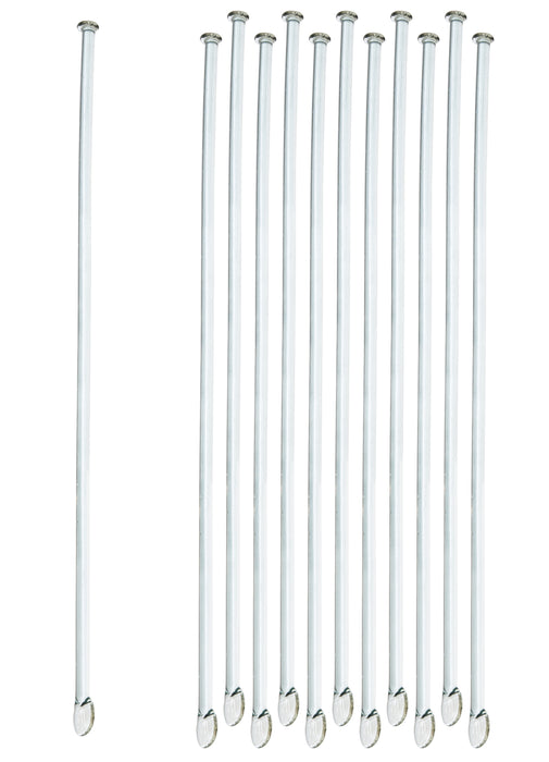 Here is the corrected text: This pack of ten multipurpose stirring rods features one spade end and one button end, making them ideal for stirring, scooping, circulating, and crushing. Each rod measures 11.8 inches in total length and 0.25 inches in diameter. The spade end measures 0.6 inches long and wide, while the button end measures 0.4 inches in diameter. Designed for use in professional laboratories, these rods are also an excellent choice for science classrooms and household use. They are autoclavable, with superior chemical durability, and can withstand high temperatures and thermal shocks due to their low temperature gradient. Eisco Labs' Borosilicate glass has the following heat tolerances: strain point, 515°C; annealing point, 565°C; and softening point, 820°C. Eisco Labs proudly manufactures its own products using state-of-the-art equipment and adheres to the highest standards of quality control. Each product is carefully designed by a team of laboratory professionals and experienced engineers with quality and durability in mind. They are manufactured with only the highest-grade raw materials, according to international quality standards, to ensure they can withstand use in even the toughest laboratory environments.