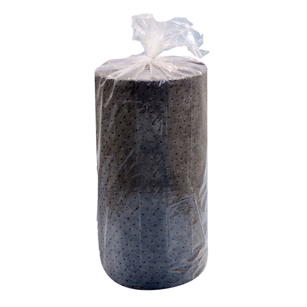 Spilfyter* Universal Pads^ 81.3cmx61m double weight roll. Absorbs up to 16 times its own weight. For absorbing non-aggressive spills such as oils, coolants, solvents, and water. Use in, under, and around machinery and equipment.
