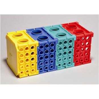 Organize various sized tubes using the Rotator Workstation. Racks can be joined together using the unique rotate and lock design. Add as many racks as you need. Racks can withstand temperatures of -80°C to 121°C and are autoclavable. Built-in ridges enable easy drainage of liquids. Pack includes 1 each of blue, green, yellow, and red racks.