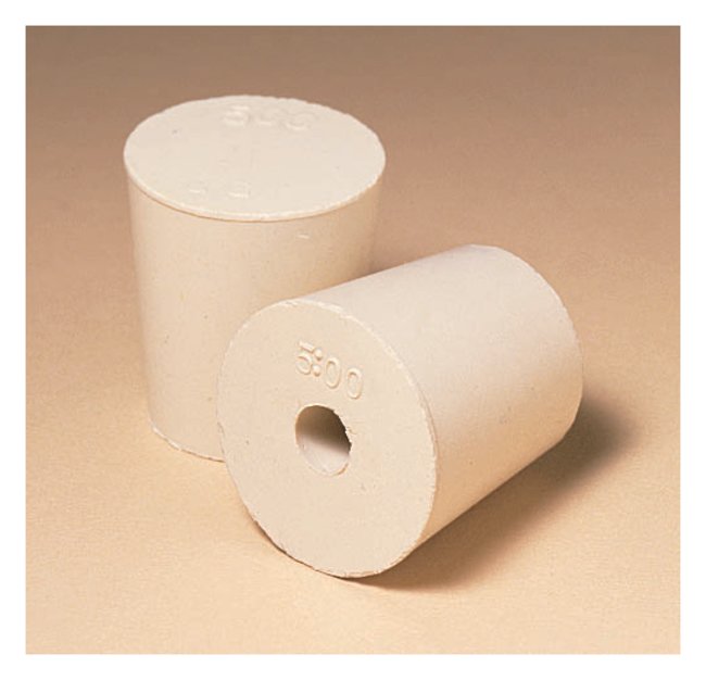 One-hole Rubber Stoppers for Kjeldahl Flasks, Light tan rubber stoppers, Pack of 18