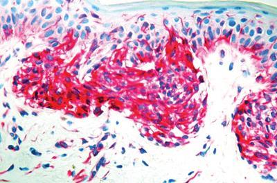 S-100^ Clone number SH-B1, This antibody is specific against an epitope located on the b chain (i.e. in S-100a and S-100b) but not on the a chain of S- 100 (i.e. in S-100a and S-100ao). This antibody cross reacts with human, porcine, rabbit, cat and rat tissues.