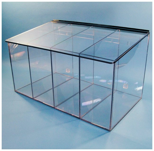 Four compartment dispenser includes a single, sloping lid with a full-length hinge to maintain HEPA flow.