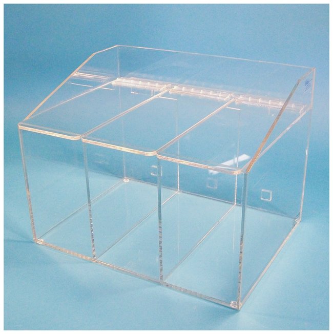 Three compartment dispenser with individually opening lidsCan be mounted with heavy-duty wall brackets (included)Flame treated edges for a smooth finish