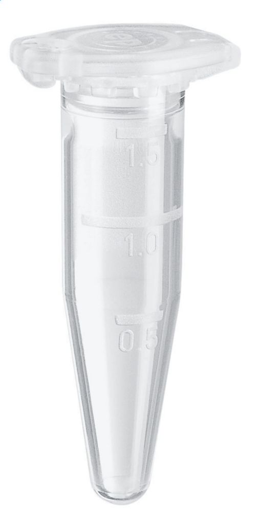 Safe-Lock Tube 1.5ml^ Safe-Lock Tube, Grade: Forensic DNA, Material: Polypropylene, Color: Colorless, Hinged lid, Precise lid sealing, Autoclavable, Large frosted lid and surface on the side for easy labeling, Stability: 30,000 x g, Functionality from -86 deg C to 100 deg C, Size: 1.5ml