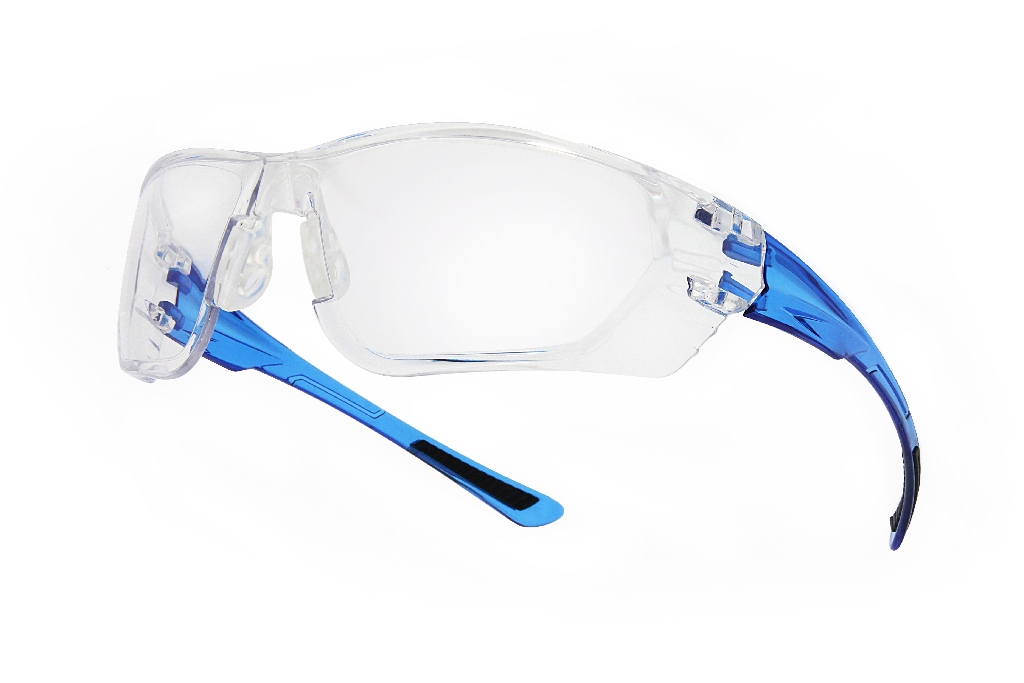 Frame color: Blue, Lightweight and sleekly designed safety glasses., 02_BulletPoint: Super lightweight at 22.7 g | Dielectric construction | Comfortable nose piece | Slim temple with rubber pad | Impact-resistant | Polycarbonate lens | Provides 99.9% UV protection, 08_Certifications: Meets ANSI Z87.1 standards., Cat. No.: 76210-826, Lens coating: Anti-fog, scratch-resistant, Lens tint: Clear, Lightweight and sleekly designed safety glasses., 02_BulletPoint: Super lightweight at 22.7 g | Dielectric construction | Comfortable nose piece | Slim temple with rubber pad | Impact-resistant | Polycarbonate lens | Provides 99.9% UV protection, 08_Certifications: Meets ANSI Z87.1 standards.