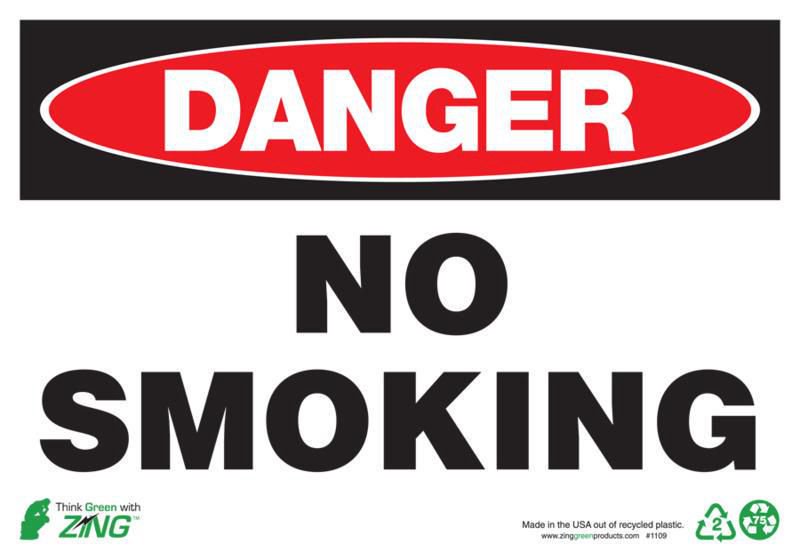 Sign Danger No Smoking Plastic 10X14In^ Danger Sign, Recycled Plastic, No Smoking, Pre-Drilled Mounting Holes & Adhesive Tabs, Impact And Uv Resistant, Ul Validated For Recycled Content, 10X14I