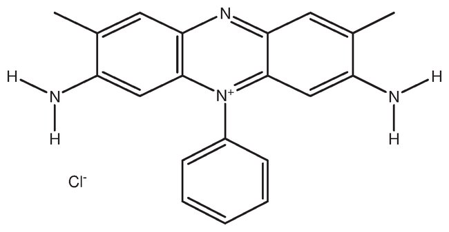 Safranine O, C20H19ClN4, CAS Number-477-73-6, 3, 7-Diamino-2, 8-dimethyl-5-phenylphenazinium chloride, Basic Red 2, C.I. 50240, 100g, 95%, Brown or Brown-Red to Green, 94% min., 350.84, Pure, Warning, GHS H Statement: Causes serious eye irritation. Causes skin irritation.