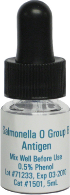 Antigen^ Salmonella O Group B Febrile Antigen, intended for the detection of bacterial agglutinins associated with a bacterial infection, For professional use only, Size: 5 mL Vial