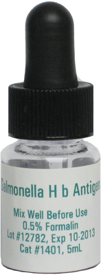 Antigen^ Salmonella H b Febrile Antigen, intended for the detection of bacterial agglutinins associated with a bacterial infection, For professional use only, Size: 5 mL Vial