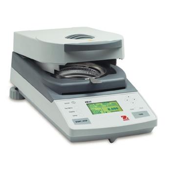 Full featured moisture analyzer fits any budgetFast halogen elementProgram and recall up to 50 methodsCompact size (8.5”W x 6”H x 14.5”L)RS232 port for printer or PCPerfect for food and beverage, environmental, chemical, pharmaceutical and other laboratories, this fast, rugged analyzer gives you the flexibility you need and the accuracy you require for determining moisture in a wide variety of materials. Readability is 1.0 mg with resolution of 0.001 g / 0.01% moisture and a capacity of 45 grams. Programming options allow for: the fastest possible time to temperature; minimal overshoot while achieving temperatures quickly; controlled ramping to temperature; settings for up to three temperatures for difficult samples.Unique auto shut-off options give you a choice of 3 pre-programmed end points for automatic operation, timed tests with audible signal when finished, or you can custom design your own end point criteria. Innovative sample pan holder makes sample transfer easier. Use Glass Fiber Pads (1371J77) for samples with high water content. Pan size: 3.5” (90 mm), 120VAC, 50/60Hz. Weight: 16 lbs.