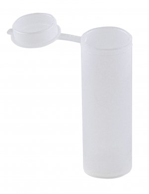 General purpose plastic vial containers with push-in friction fit hinged lids. Lightweight, wall thickness approximately 1mm. Withstands temperatures up to 80° C.