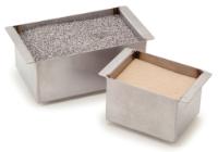 Here is the corrected text: These sand baths are ideal for use in heating blocks with irregular vessels. They feature stainless steel construction for superior corrosion resistance and are designed to hold sand, shot, or nonvolatile liquids. Right angle thermometers (61220-740 and 61220-742) have an accuracy rating of ±1°C. **Sand Bath for 1 Block Heater** * Cat. No.: 13259-262 * Dimensions: 9.5 x 7.6 x 6.4 cm (3 3/4 x 3 x 2 1/2 in) * Now with Best-in-Class, Exclusive 5-Year Warranty * GSA Contract: Yes **Sand Bath for 2 Block Heater** * Cat. No.: 13259-264 * Dimensions: 9.5 x 14.9 x 6.4 cm (3 3/4 x 5 7/8 x 2 1/2 in) * Block size: Double * Now with Best-in-Class, Exclusive 5-Year Warranty * GSA Contract: Yes **Sand Bath for 3 Block Heater** * Cat. No.: 13259-266 * Dimensions: 9.5 x 22.4 x 6.4 cm (3 3/4 x 8 13/16 x 2 1/2 in) * Now with Best-in-Class, Exclusive 5-Year Warranty * GSA Contract: Yes **Sand Bath for 4 Block Heater** * Cat. No.: 13259-268 * Dimensions: 14.7 x 19.1 x 6.4 cm (5 7/8 x 7 1/2 x 2 1/2 in) * Block size: 4 * Now with Best-in-Class, Exclusive 5-Year Warranty * GSA Contract: Yes **Sand Bath for 6 Block Heater** * Cat. No.: 13259-270 * Dimensions: 14.7 x 28.7 x 6.4 cm (5 7/8 x 11 5/16 x 2 1/2 in) * Block size: 6 * Now with Best-in-Class, Exclusive 5-Year Warranty * GSA Contract: Yes