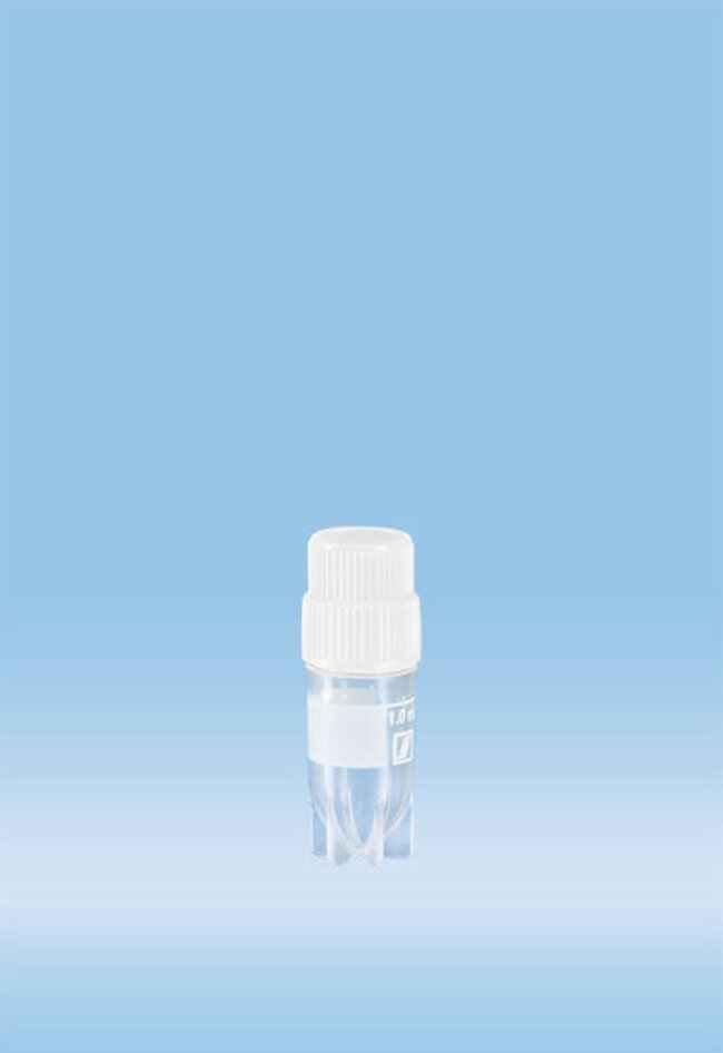 Tube, Cyrogenic; CyroPure; Sarstedt; Vol.: 1.0mL; With external thread; Sterile; White cap; Interlocking base enables single-handed operation in CryoRack 40 and most cryogenic racks; Fit standard cryo boxes and aluminium holders; 500/pk.