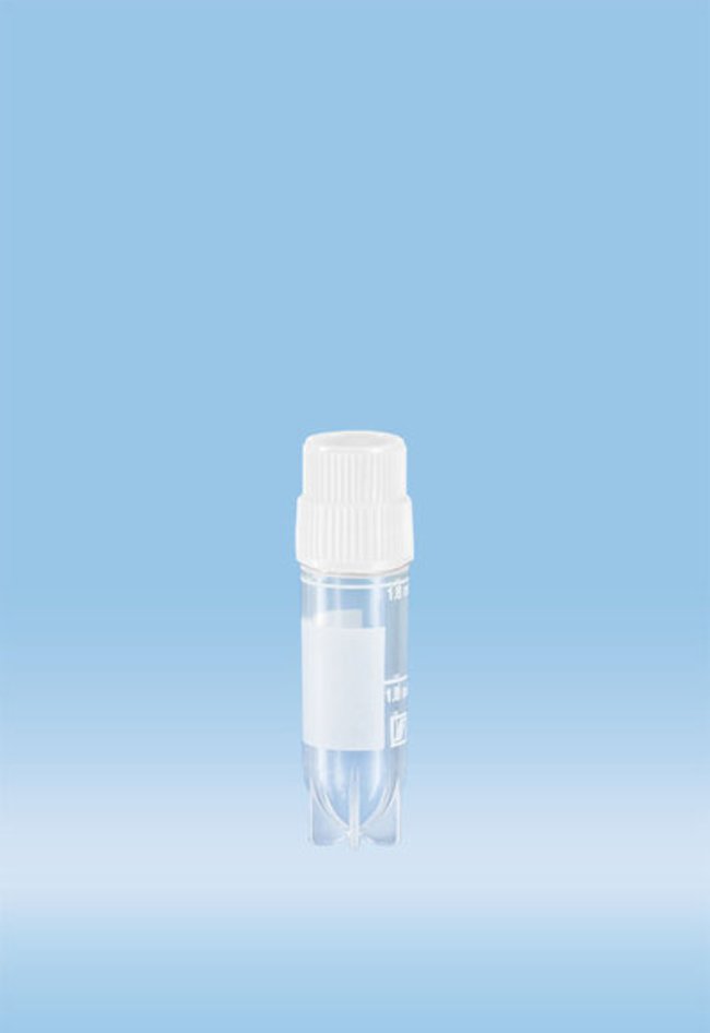 Tube, Cyrogenic; CyroPure; Sarstedt; Vol.: 1.8mL; With external thread; Sterile; White cap; Interlocking base enables single-handed operation in CryoRack 40 and most cryogenic racks; Fit standard cryo boxes and aluminium holders; 500/pk.