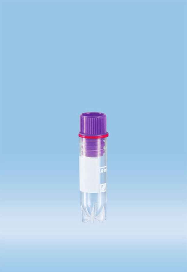 Tube, Cyrogenic; CyroPure; Sarstedt; Vol.: 1.6mL; With internal thread; Sterile; Violet cap; Interlocking base enables single-handed operation in CryoRack 40 and most cryogenic racks; Fit standard cryo boxes and aluminium holders; 500/pk.